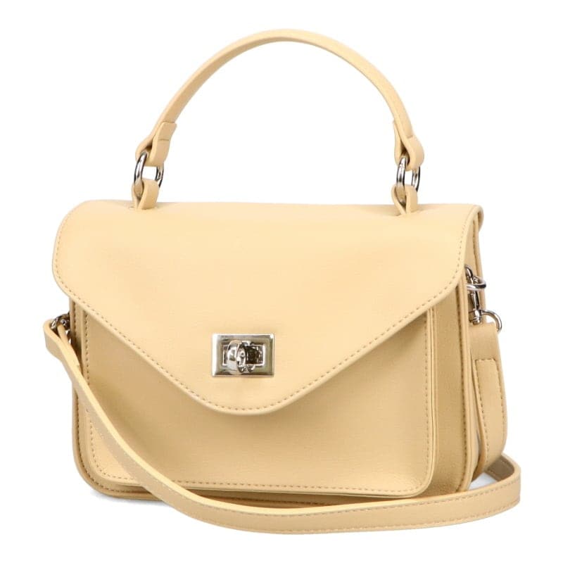 コンパクトなサイズ感でデイリーユースしやすいバッグは柔らかい合皮素材にすることでかっちりしすぎず様々なテイストのお洋服にマッチ。フラップ部分にひねり金具を付け、内側をファスナー仕様にするなど使い勝手も良く海外旅行にもおすすめ。付属のストラップを付ければショルダーバッグとしても使える。