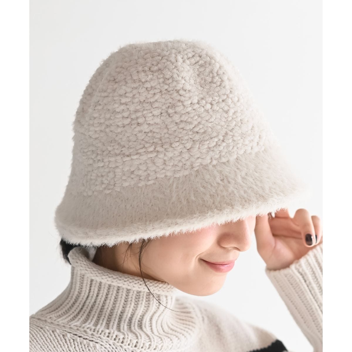 編地切替シャギーニットプルオーバー