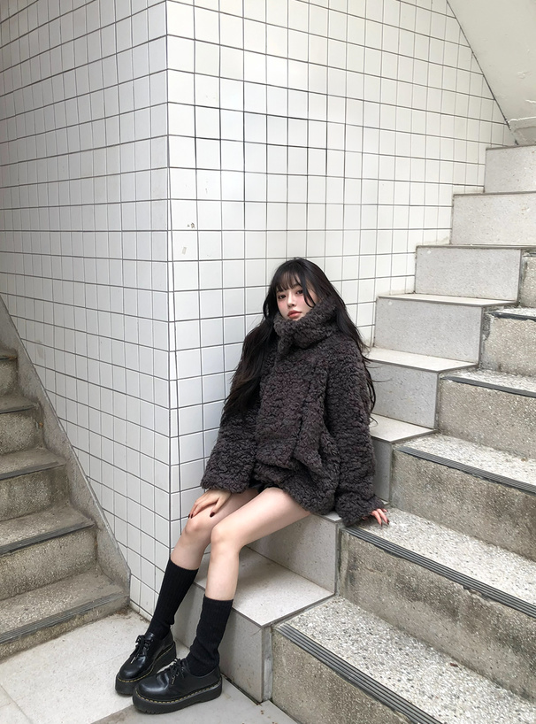 襟2Wayミックスカラーボアブルゾン[ask146]