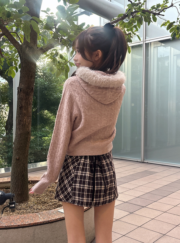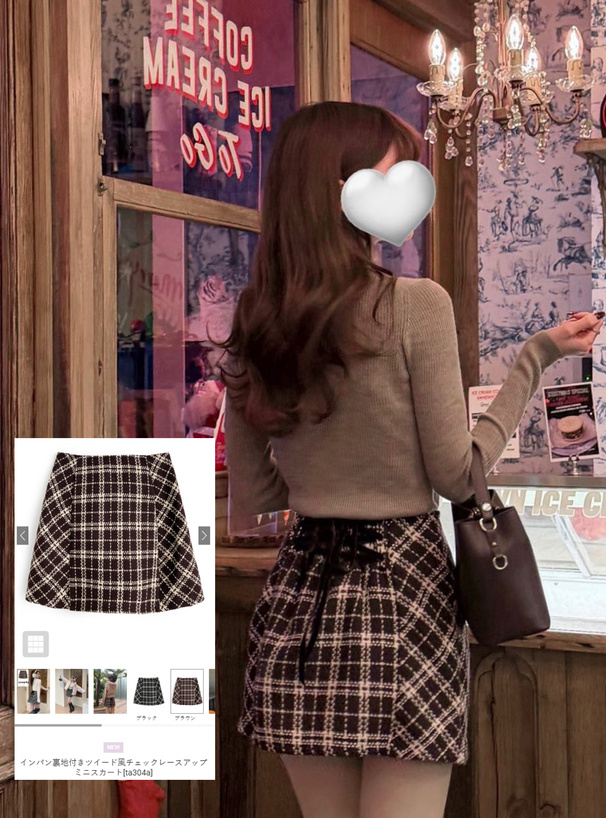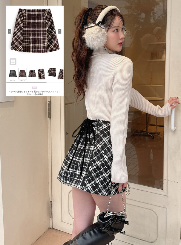 インパン裏地付きツイード風チェックレースアップミニスカート[ta304a]