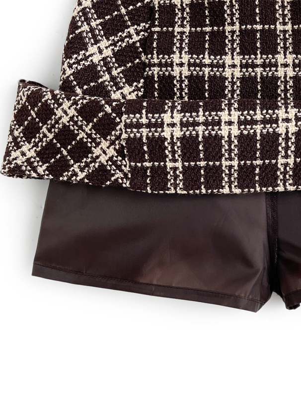 インパン裏地付きチェック柄ツイードミニスカート[ta088]