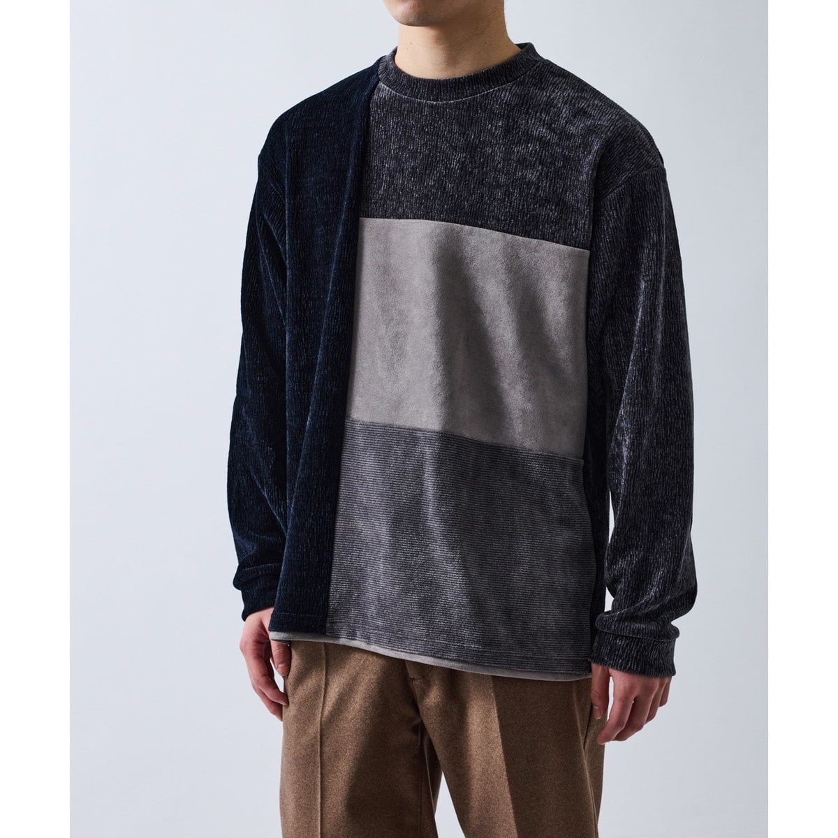 切替部分には凹凸感のあるモール見えのリップル素材を採用。