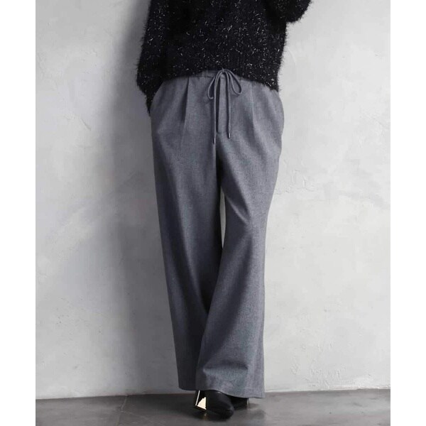 微起毛加工を施したワイドパンツ。幅広いスタイリングに対応し、シーンを問わず活躍します。ウエストはゴムギャザーとドローストリング仕様で快適な着心地。腰まわりをすっきりと見せ、ほどよいボリュームで美しいシルエットを描きます。40サイズは限定店舗展開です。