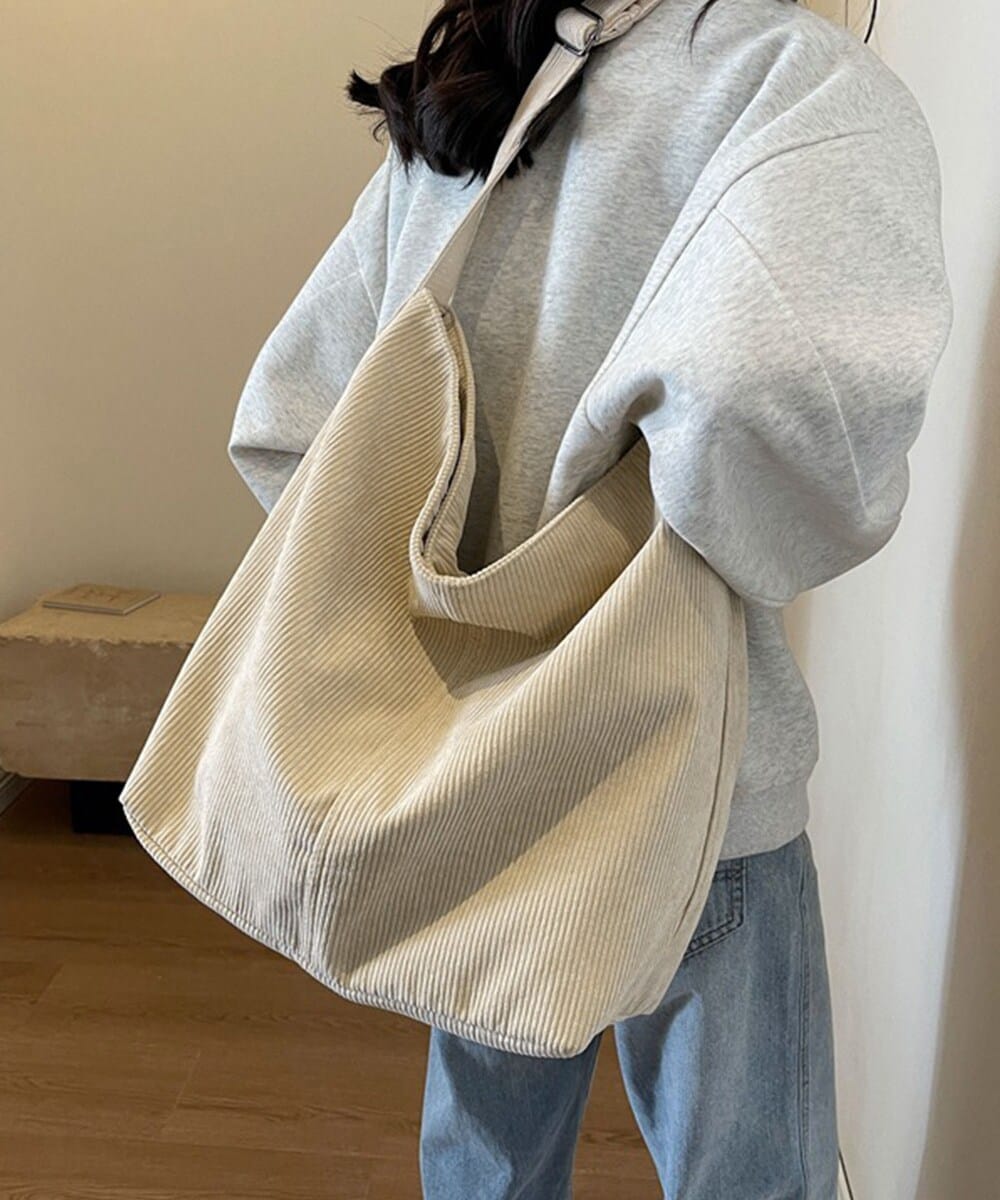 やわらかなコーデュロイ素材のビッグショルダーバッグ。