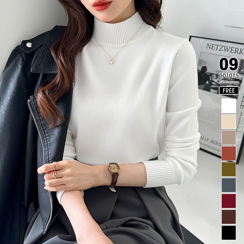 ハイネックニットトップス。