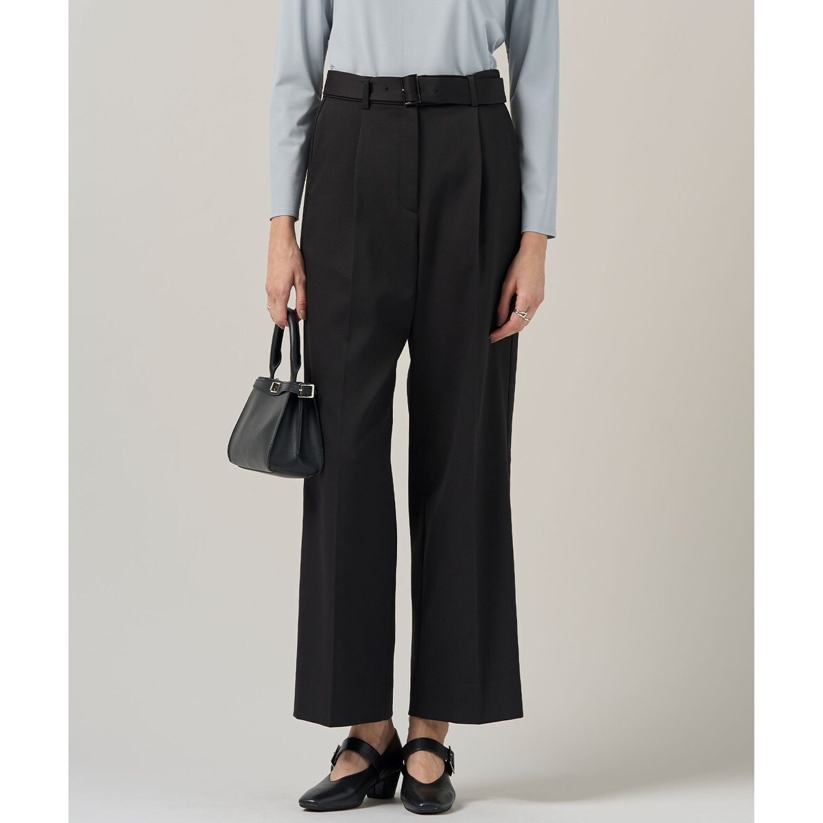 ■デザイントラックパンツディティールをキレイめに落とし込んだデザインが特徴のワイドストレートパンツです。サイドに効かせたラインがポイントになっています。附属のベルトはスタイリングのアクセントにもなり、お好みのサイズに調整することも可能です。また、ウエスト部分はゴム内蔵のスマートバック仕様で、ラクな履き心地なのも嬉しいポイントです。同シリーズのカーディガンブラウスとのセットアップ着用はもちろん、トップスを選ばず履いていただけるデザインで、オンオフ幅広く活躍する一枚です。