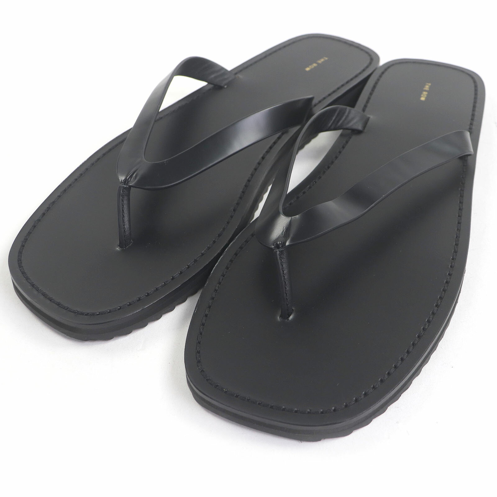 極美品☆THE ROW ザロウ GRAPHIC STRAP KITTEN スクエアトゥ レザー サンダル ブラック 35 箱・保存袋付き イタリア製 レディース【中古】