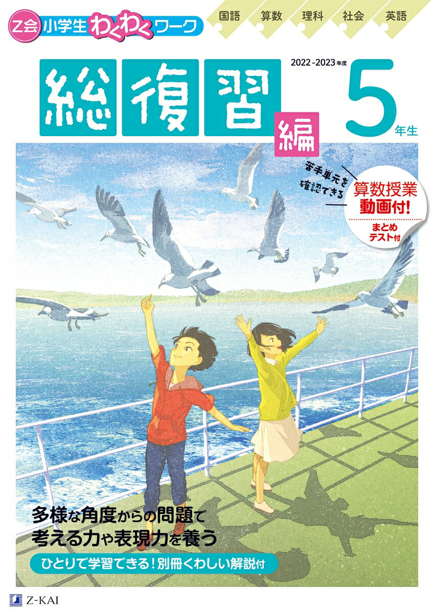 ◎この1冊で5年生を総復習!算数の「授業動画」付!6年生になる前に、5年生で学習した国語・算数を総復習できます。苦手な部分をなくし、学習内容の定着をはかることで、スムーズに6年生の学習に入っていくことができます。5年生の途中で、学校で習ったところの復習としてもお使いいただけます。算数には「教科書対照表」がついていますので、お使いの教科書に合わせて取り組むことができます。さらに、それぞれの回に対応した「授業動画」を無料で視聴することができます。◎理科・社会もセット、英語は音声ダウンロード付理科・社会は、5年生までに学習した内容から重要な単元を取り上げて出題しています。また、英語は日常生活でよく使う表現を取り上げています。「文字」や「英文の書き方」の基本的なきまりを確認することができます。◎仕上げのまとめテスト付最後の仕上げに4教科の「まとめテスト」がついています。5年生の総まとめとして取り組みましょう。◎自分ひとりで答え合わせができる、別冊『答えと考え方』付お子さまが一人で答え合わせができるように、『答えと考え方』は別冊になっています。Z会ならではの詳しい解説で、つまずきがちなポイントを見逃しません。お子さまの学習もスムーズに進みます。