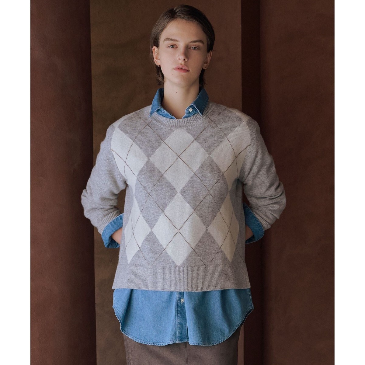 トラッドな雰囲気と女性らしさを兼ね備えた、ソフトな風合いのアーガイルニット
