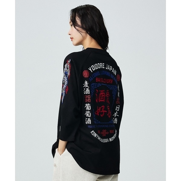 #YOIDORE #ヨイドレ #ラグランT #7分袖 #バックプリント #酒好きT #ユニセックス #ストリートカジュアル #レイヤードコーデ #和柄モチーフ #SAKELOVE