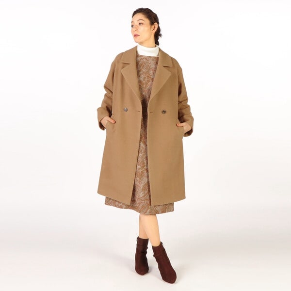 大きめシルエットがトレンド感あるシルエットのコート。フェルトの様にやわらかで、保温性の高いメルトンウール生地で仕立てた秋冬シーズンらしいあたたかな素材感。ブランドロゴ入りのボタンなど細部までこだわりを感じるデザインディテール。スタイリッシュで旬なお出かけコーディネートが完成するアイテムです。