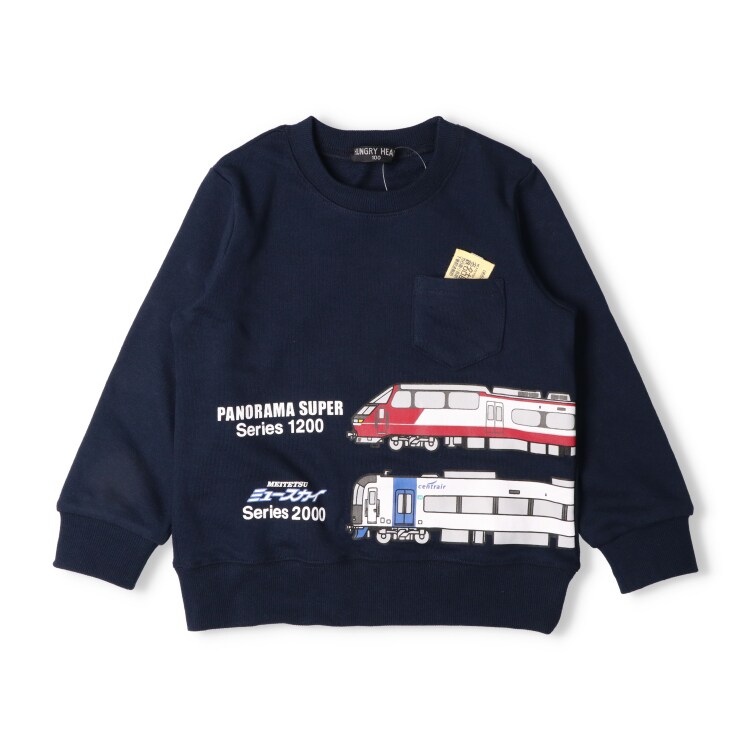 男の子が大好きな電車!名鉄電車、名古屋鉄道商品化許諾済み商品です。パノラマSuper(パノラマスーパー)とミュースカイのプリント入り。胸のポケットには切符風のモチーフ!遊び心のあるアイテム。秋から春まで長く着られる裏毛素材のトレーナー、スウェット。【アイテム】長袖 ロングスリーブ トップス カジュアル お洒落 オシャレ かっこいい かわいい 可愛い 普段着 デイリーウェア お出かけ着 お外遊び着 子ども こども 男児 男の子 ボーイズ キッズ ベビーサイズ トドラーサイズ 幼稚園 保育園 小学校 通園 通学 小学生 2025年秋冬物新作 丸高衣料 鉄道 子鉄 車両 電車 電鉄 トレイン イエロー 黄色 ネイビー 紺色
