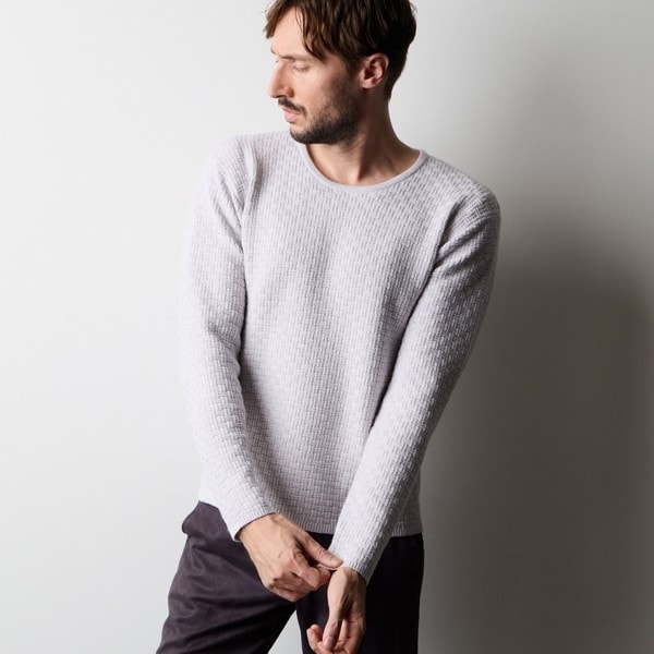 バスケット柄をリンクスジャカードで表現したクルーネックプルオ-バ-ニットになります。