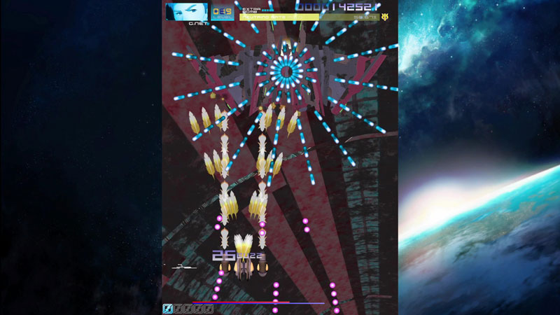 敵の弾をかすらせるギリギリの攻防で自機が成長し、ショットなども変化!