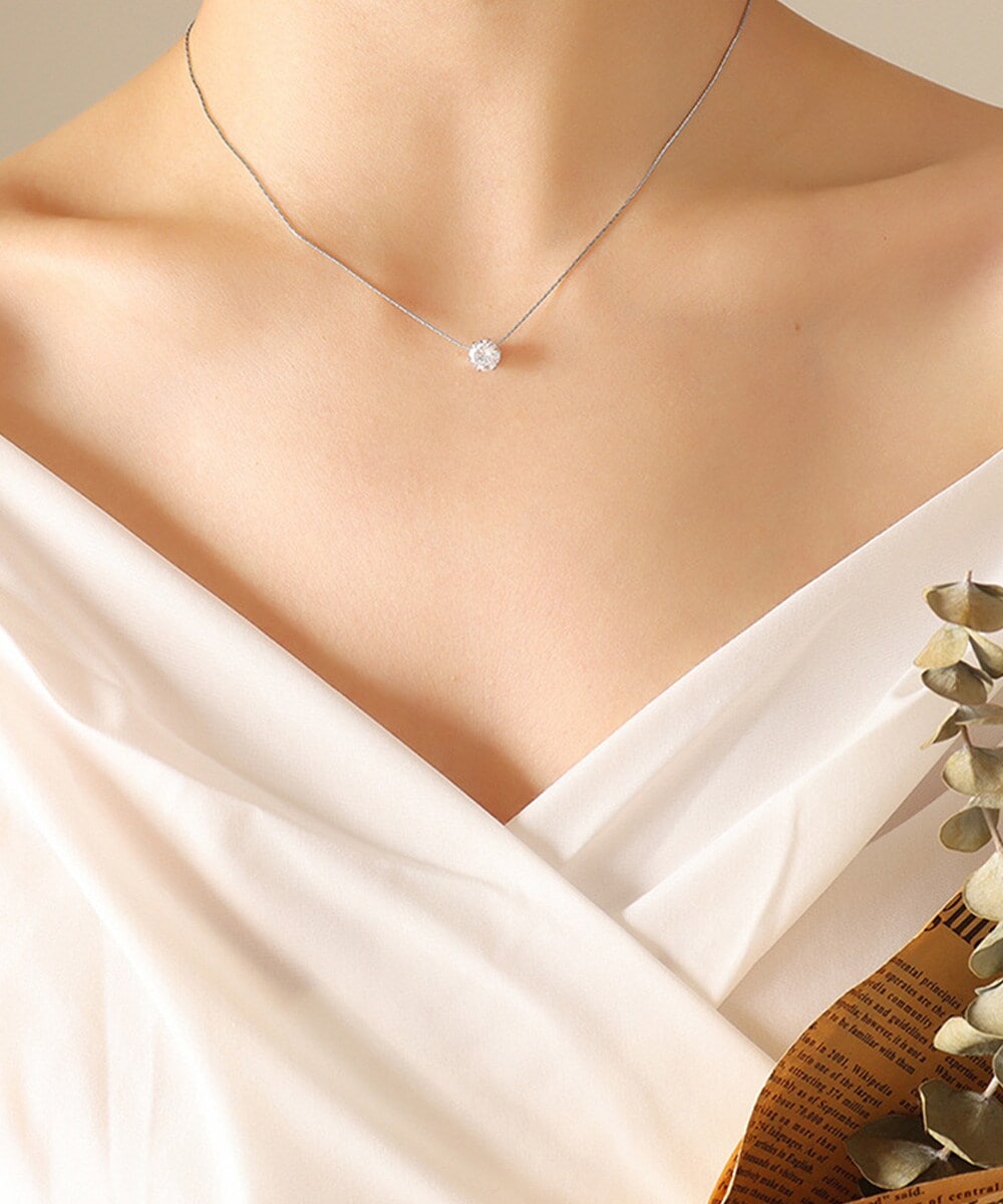 きらきら輝く一粒のラインストーンをあしらった、上品で華奢なネックレス。