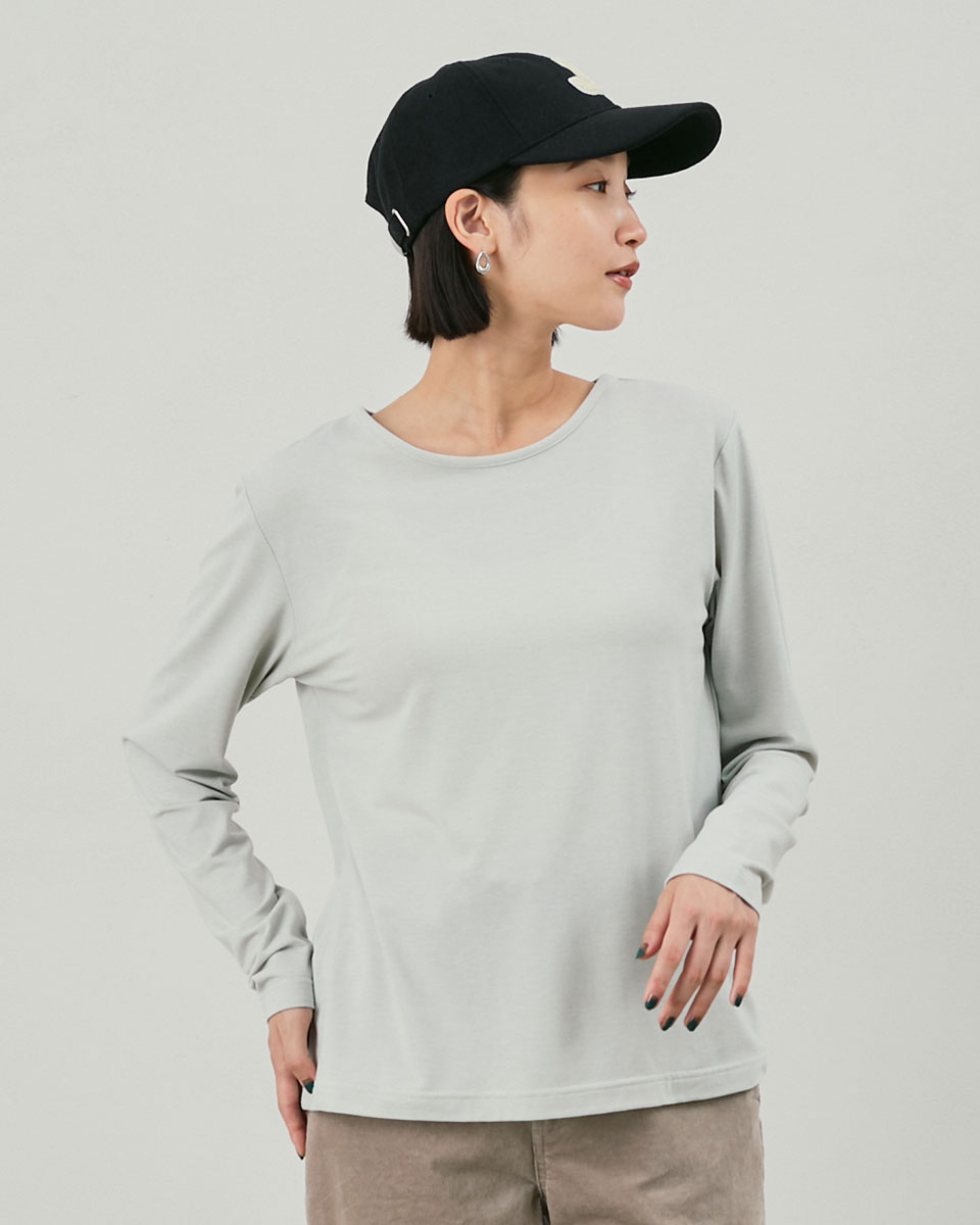 薄手の天竺素材はストレッチ性もありながらウール混率の為、暖かみも兼ね備えています。