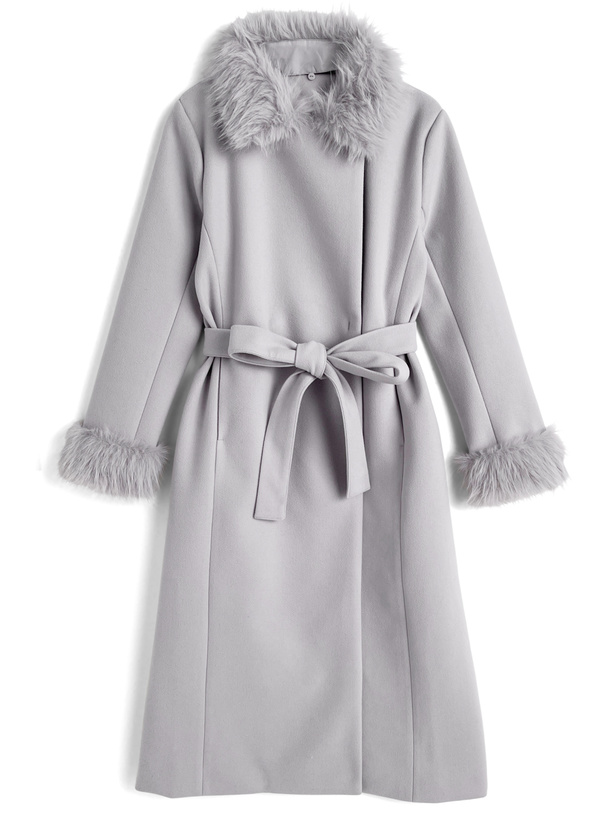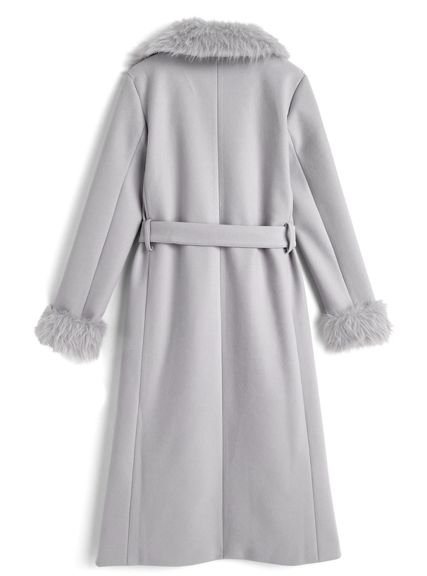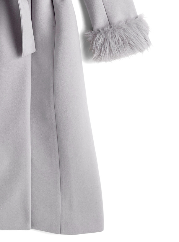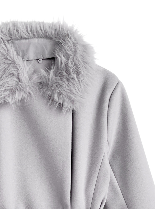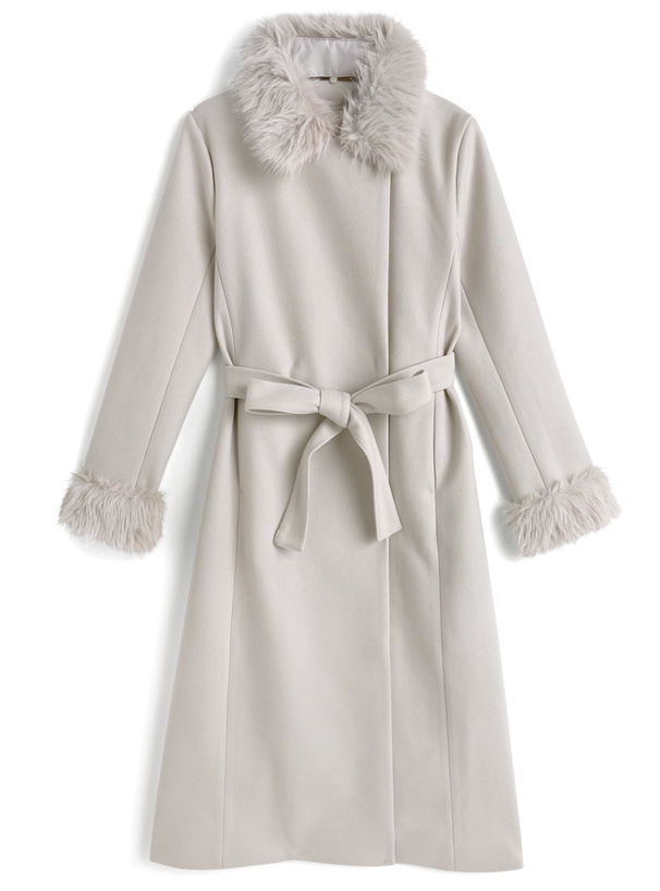 ファーティペット&リボンベルト付きフレアコート[ze931]