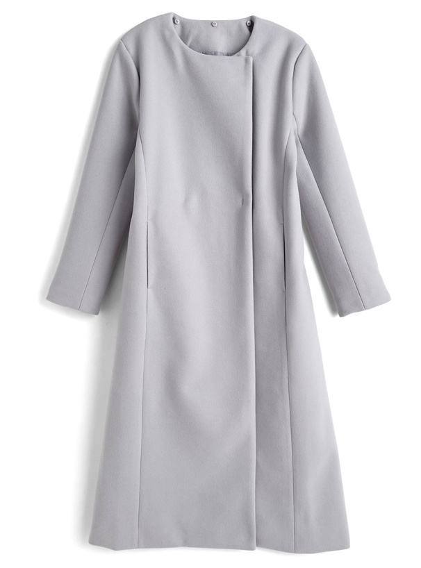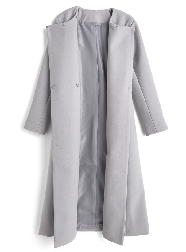リボンベルト付きビッグカラーロングコート[ze752]