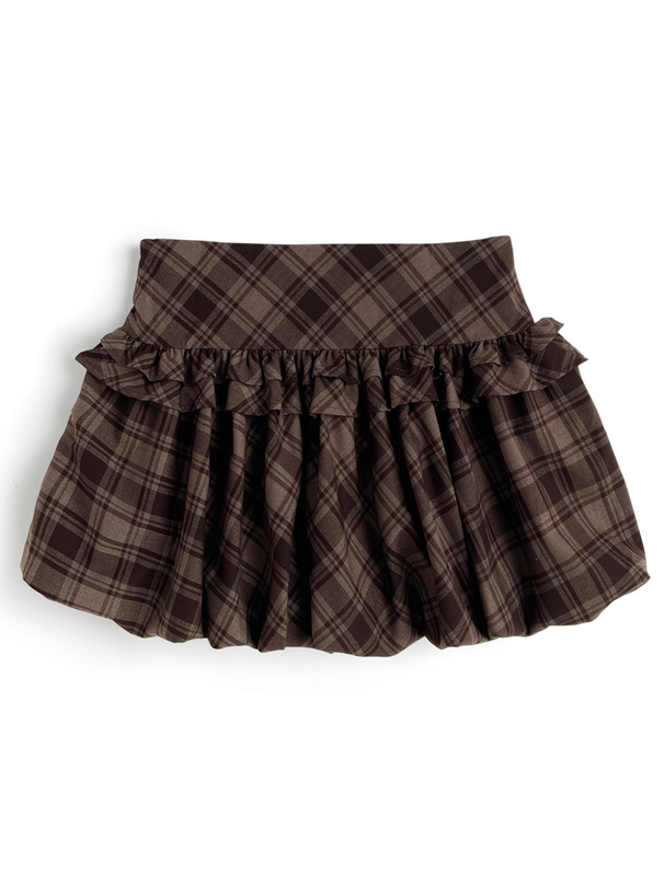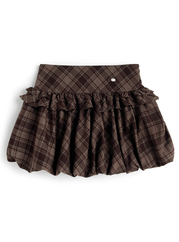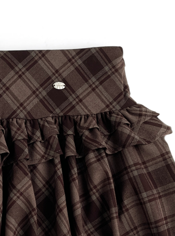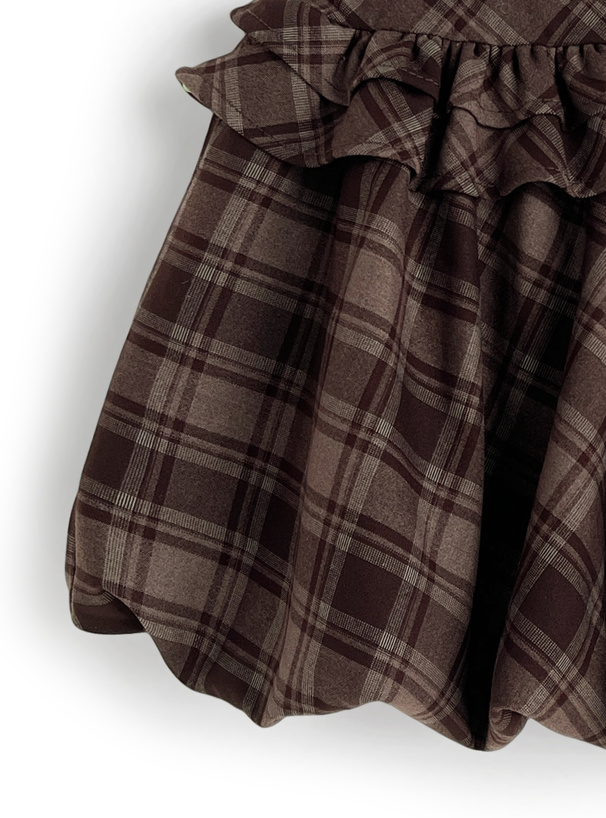 インパン裏地付きチェック柄リボンフリルミニスカート[ac2609]