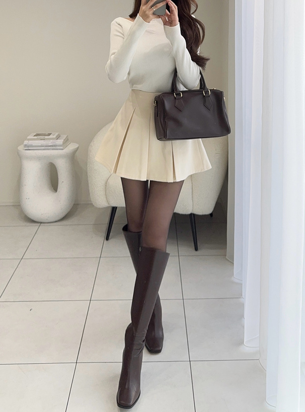 インパン裏地付プリーツ切り替えミニスカート[ai145]