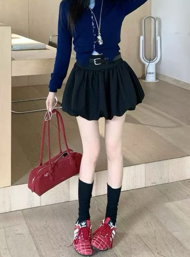 ベルト&インパン裏地付きバルーンミニスカート[sd186]