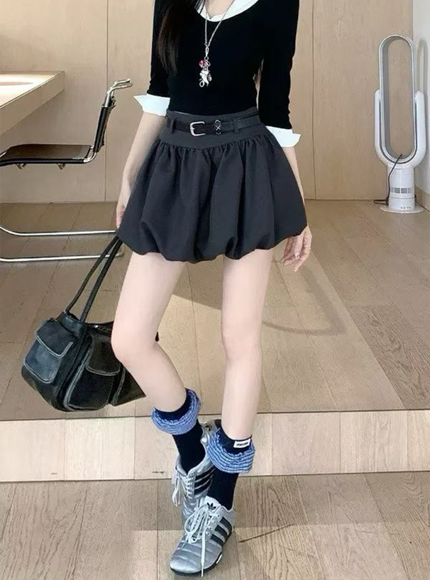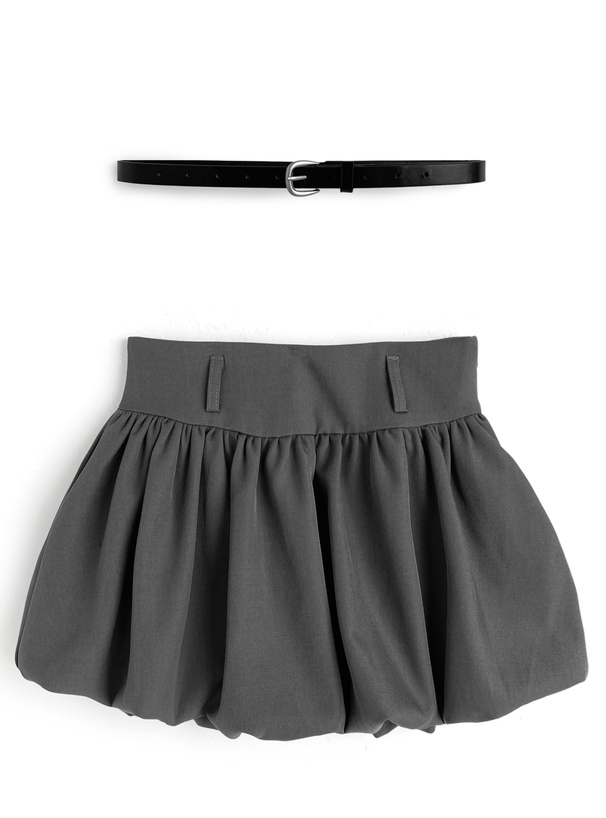 インパン裏地・ベルト付きバルーンミニスカート[ai253]