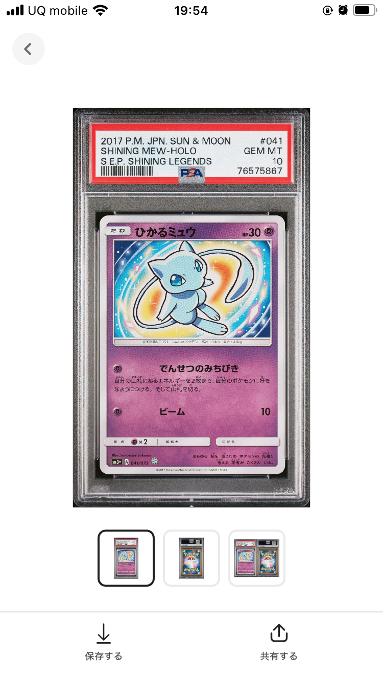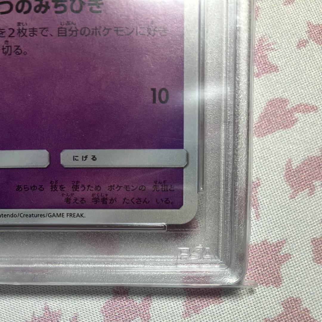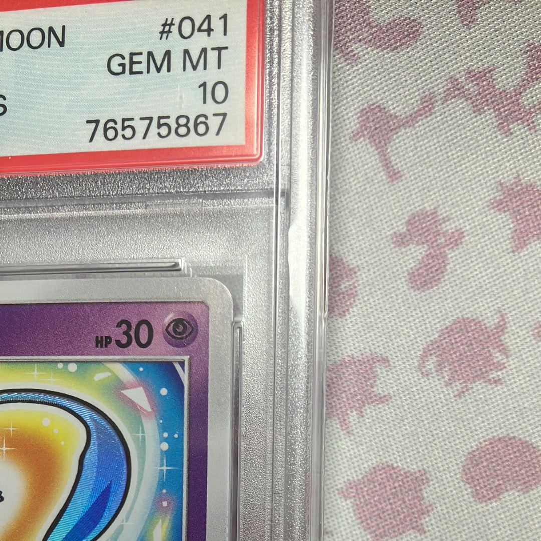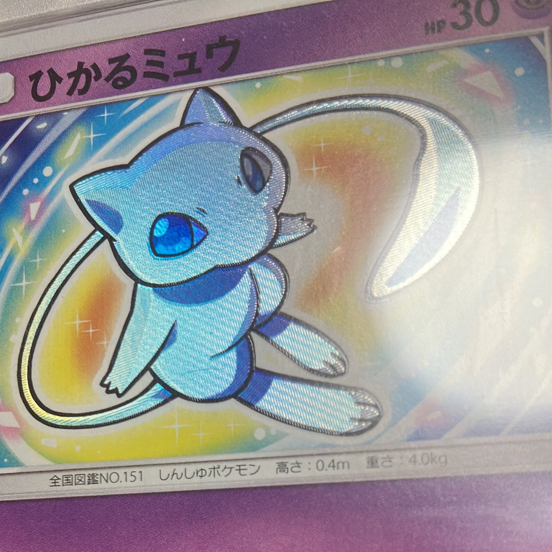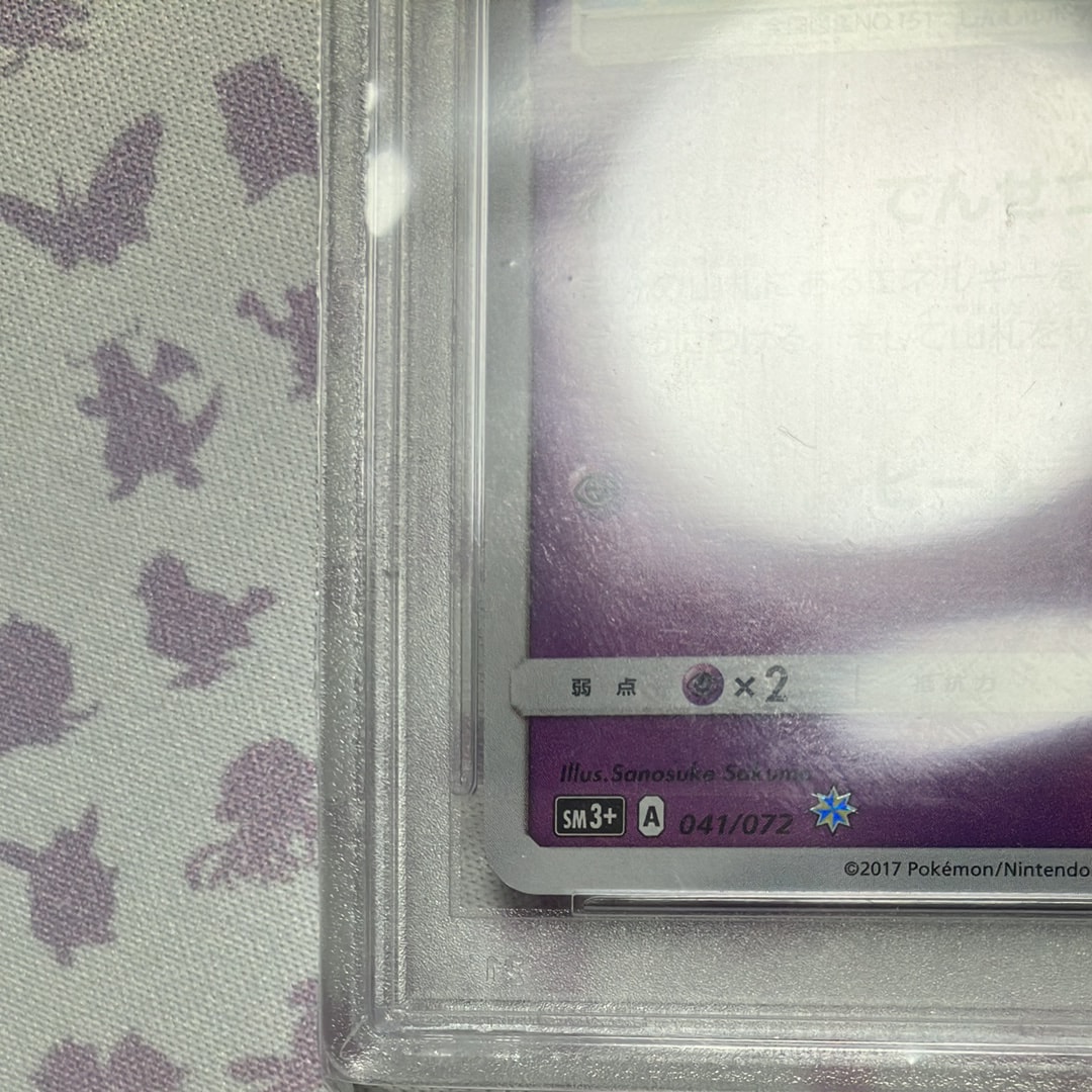 PSA10ですが、検品していたところミュウのイラスト部分足の付け根あたりにうっすらと擦り傷のような跡が確認できました。カード表面の傷かケースの傷か分からず、相場よりお安く出品させていただきます。こちら状態をご確認の上ご購入をお願いいたします。