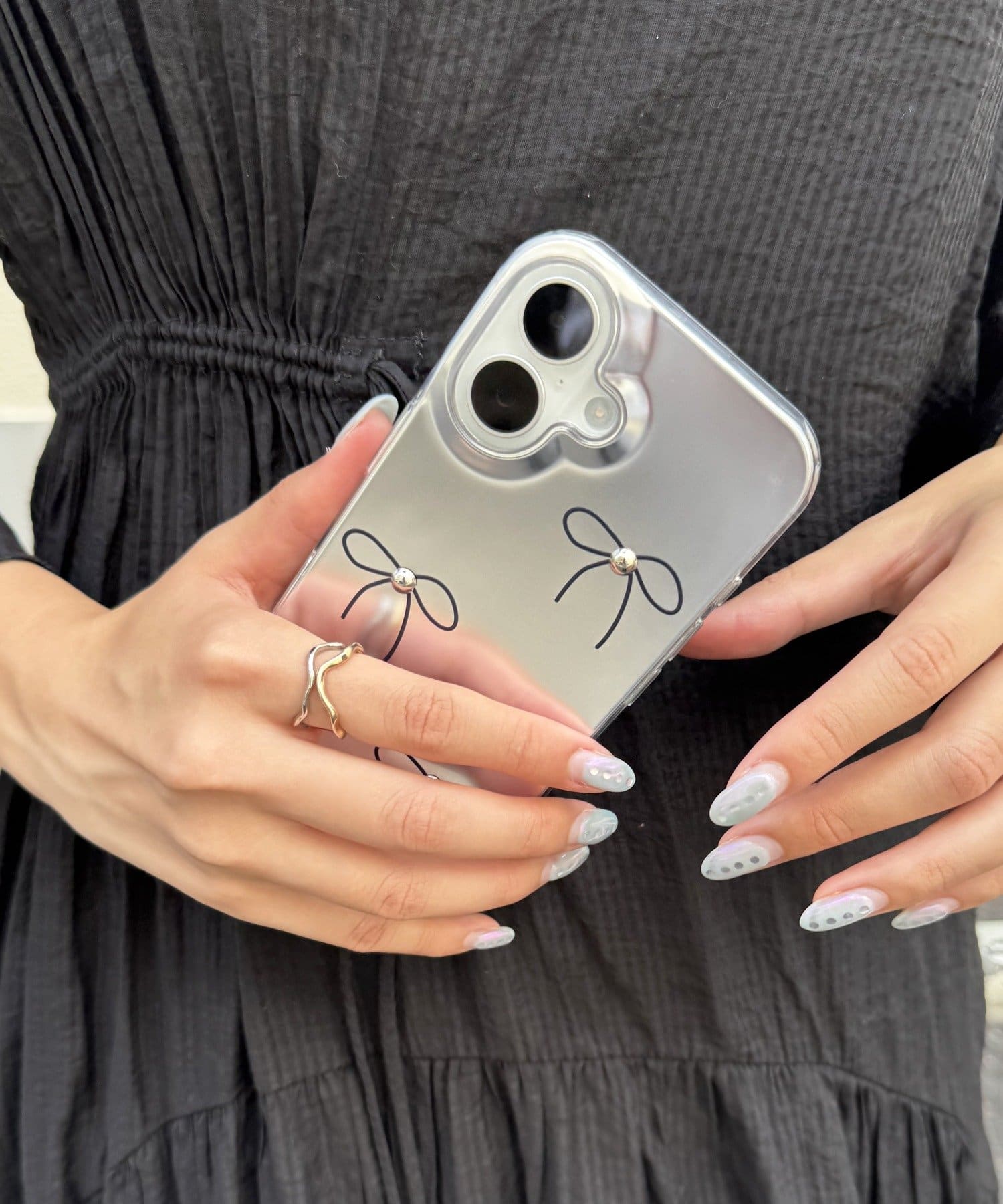 iPhone16ケース ピンク パール&リボン キラキラ 耐衝撃