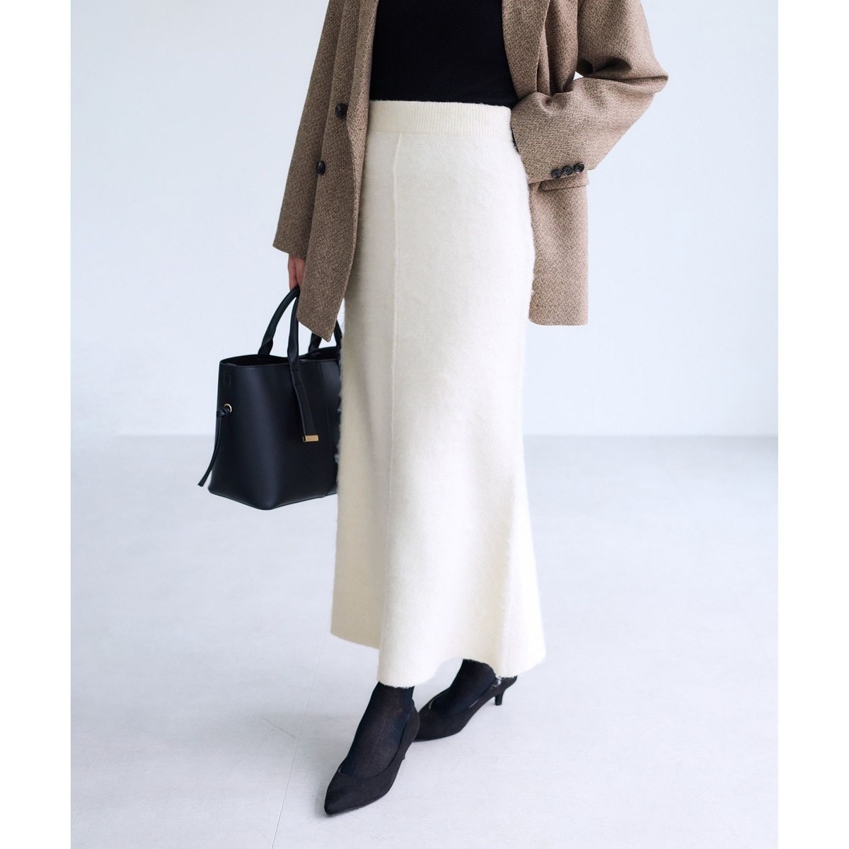 ふわふわシャギーの素材がかわいくてスタイルがよく見えるナローシルエットのニットスカート。