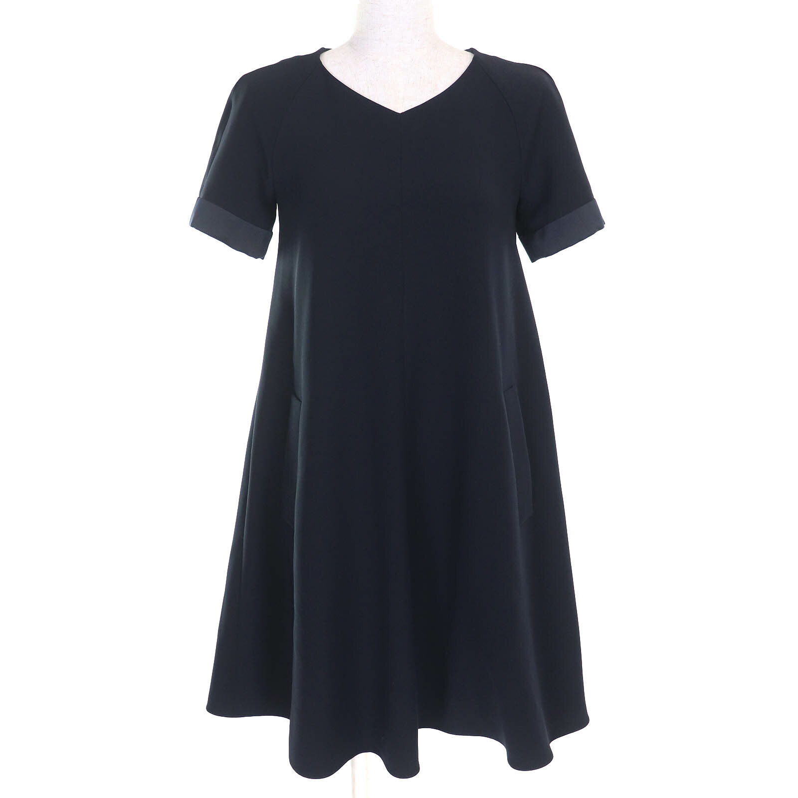 極美品△Y's ワイズ YM-T20-676 千鳥格子 水玉 フロッキープリント 長袖 ハイネック トップス ネイビー ブラック 2 日本製 正規品 レディース オススメ◎【中古】
