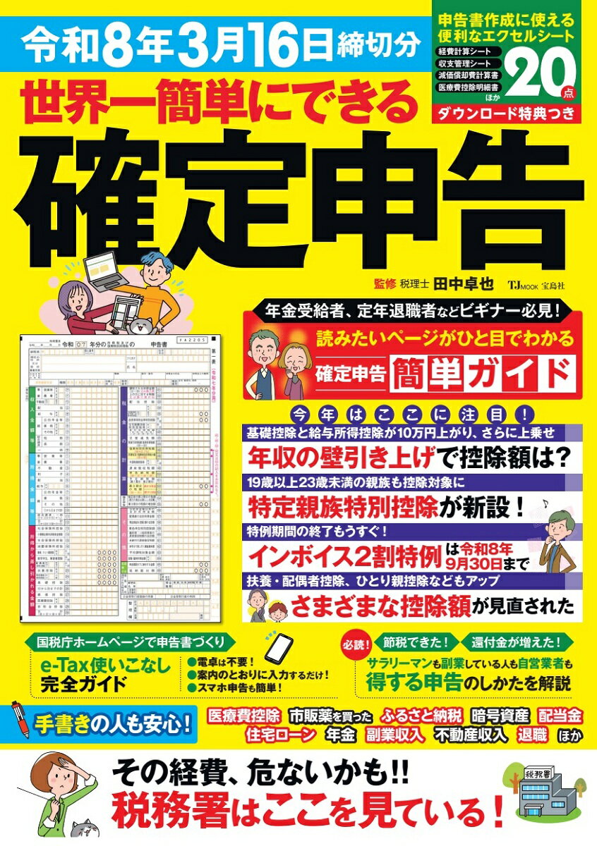 確定申告は個人事業主だけのもの。サラリーマンには無縁だと思っていませんか? 実はサラリーマンでも、ある条件に当てはまる人は確定申告をしなければなりません。医療費控除やふるさと納税、住宅ローン、株式や投資、近年増えている副業など、その対象は様々。本誌は、初めての人でもサクサクと確定申告ができるように、控除対象者をわかりやすく解説するのに加え、実際の記入例を示します。さらに、初めての人でもベテランの人でも楽に書類作成ができるように、エクセルシートのダウンロード特典つき。陥りやすいミスについても丁寧に解説しています。