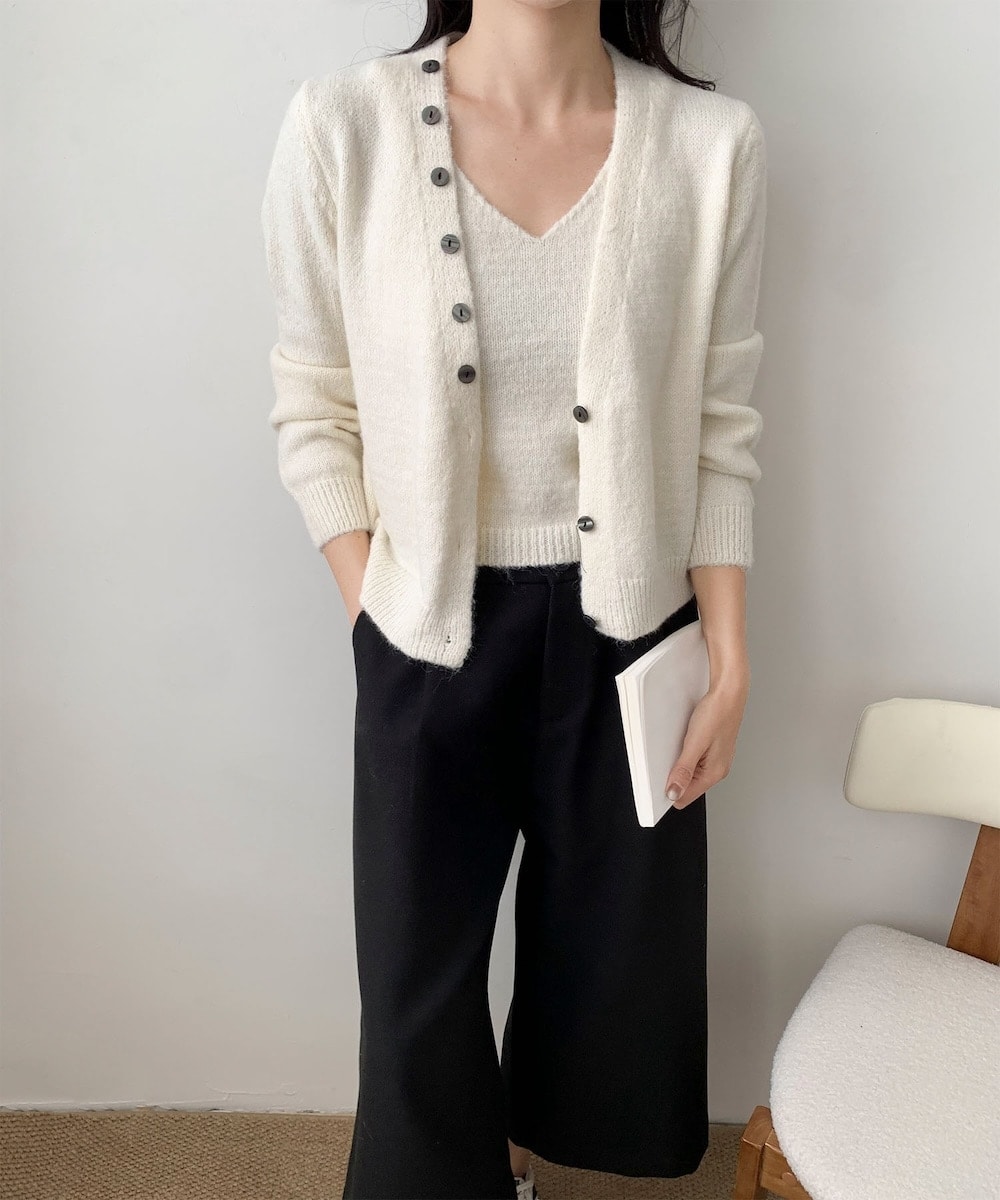 そのままセットで着ても、他のアイテムと組み合わせてもコーデの幅が広がる万能ニットセットです。