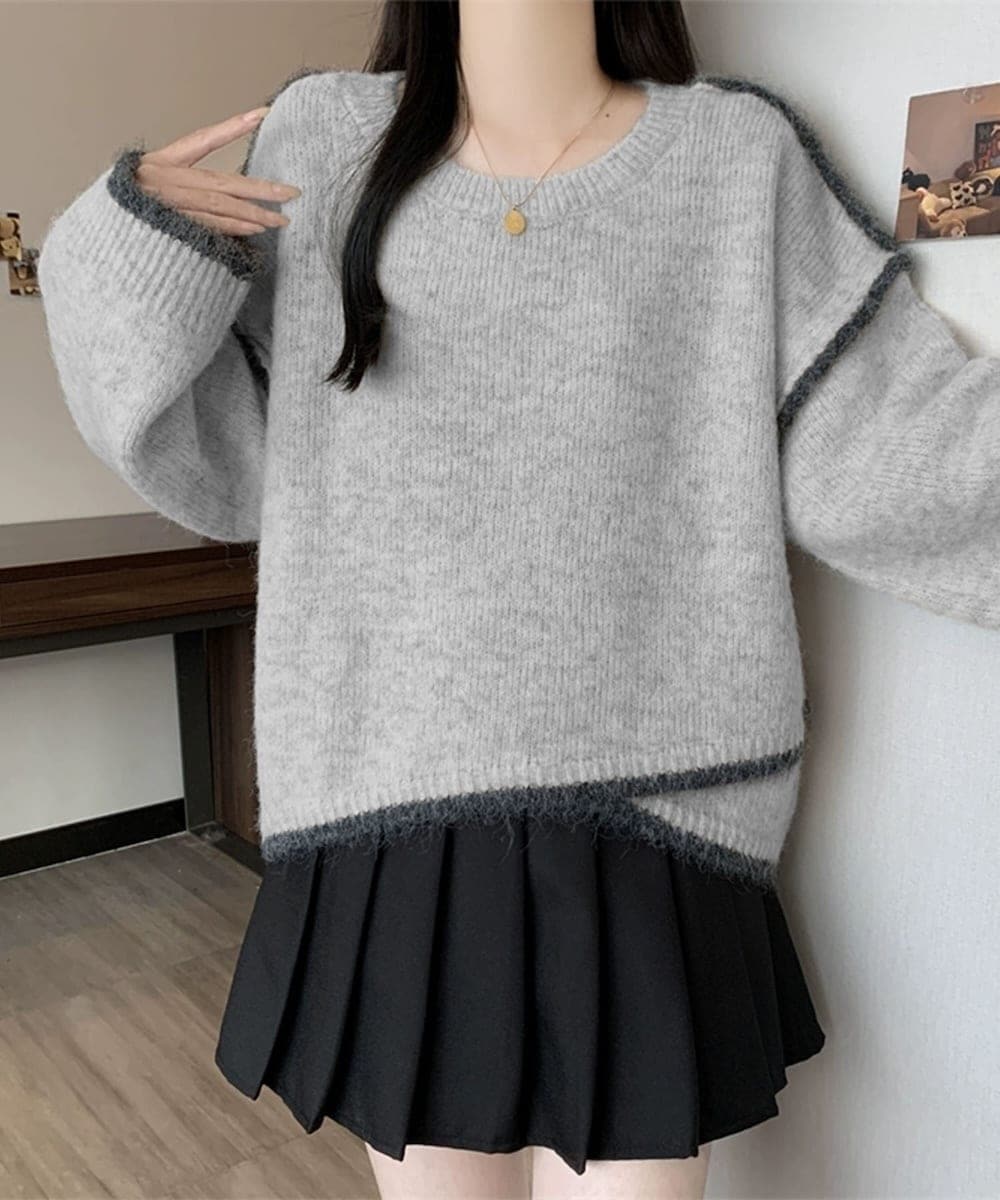 シンプルな中に遊び心を加えた、配色ラインがポイントのニットプルオーバー。肩や袖口、裾に施されたラインが立体感を与え、着るだけでこなれた雰囲気に。