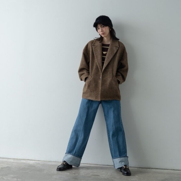 大きめの衿と肩を落としたデザインが、リラックス感とカジュアル感をさりげなく演出します。