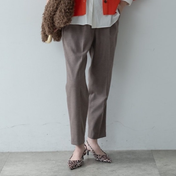 シンプルながらもエレガントな印象を与えるテーパードパンツ。
