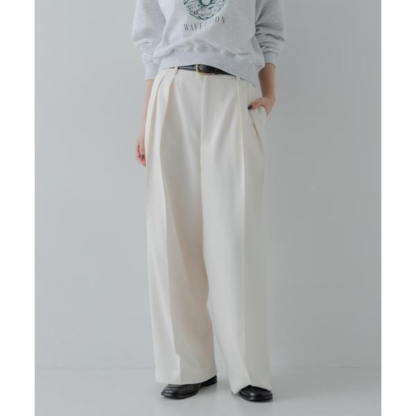 太すぎないすっきりとしたワイドシルエットに、内側に向いたツータックデザインをプラス。