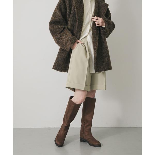 イージーケアが嬉しいフルダルツイル素材を使用したハーフパンツ。ウエストのタックデザインが、腰まわりをすっきりと見せ、スタイルアップ効果を発揮します。裾の幅広な折り返しが、シンプルな中にモードなアクセントをプラス。きれいめなブラウスからカジュアルなニットまで、幅広いトップスと合わせられる万能な一枚です。