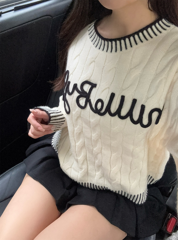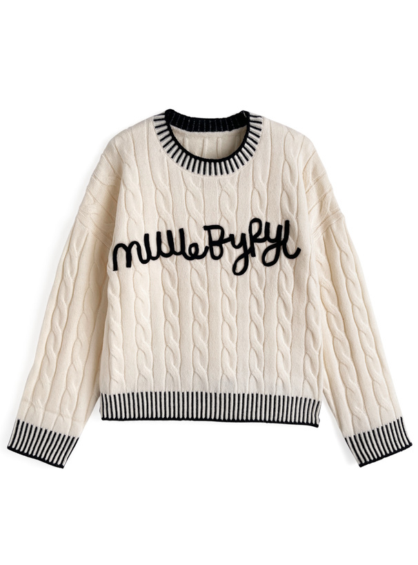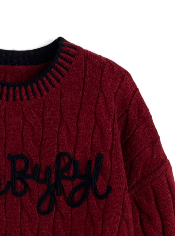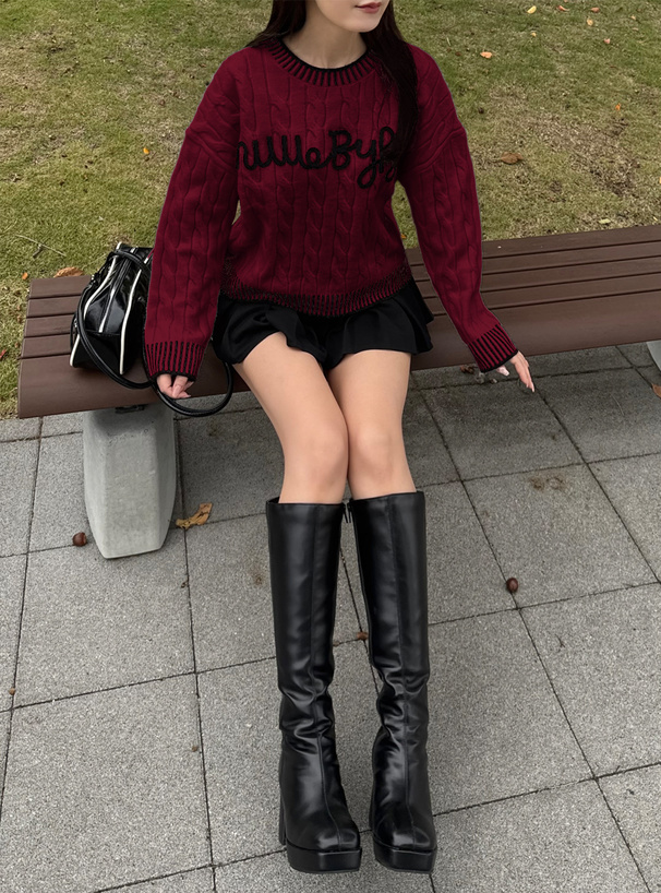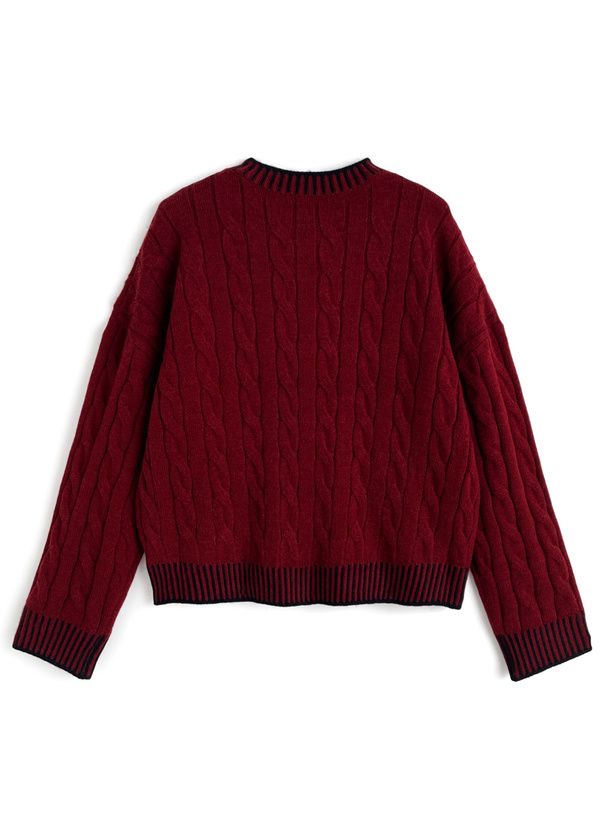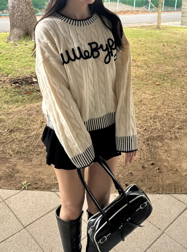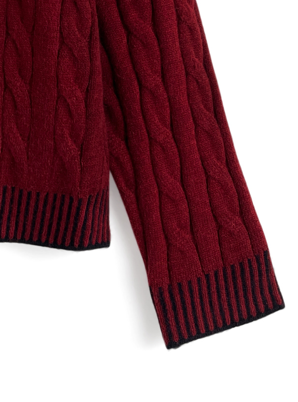 ケーブル編みデザインが魅力のニットトップス。