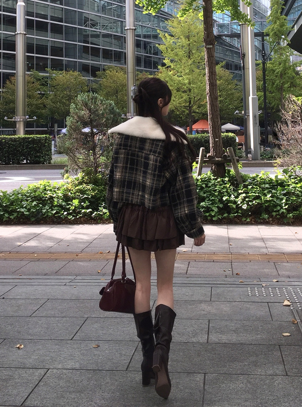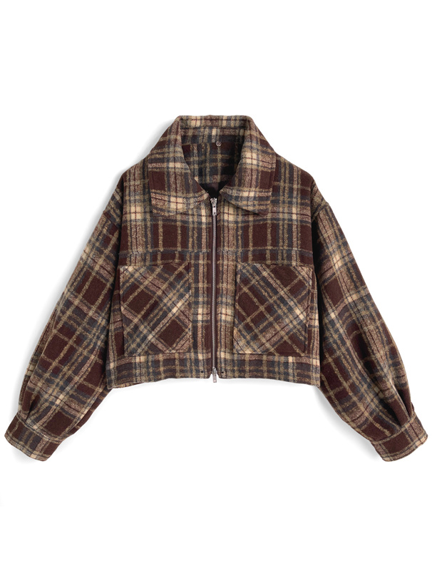 モダンな雰囲気漂う配色のチェック柄生地で仕立てたジャケット。