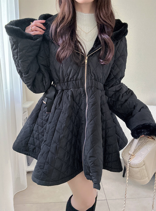 上品さ漂うキルティングデザインは、中綿がしっかりと入っており暖かい。