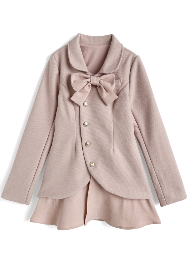ファーフードサイドリボンキルティングラインコート[kd128]