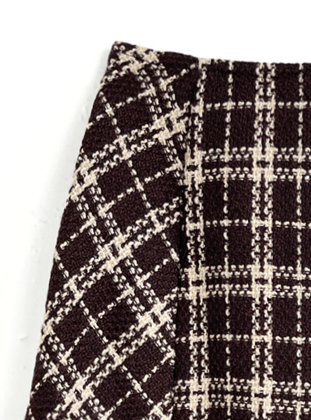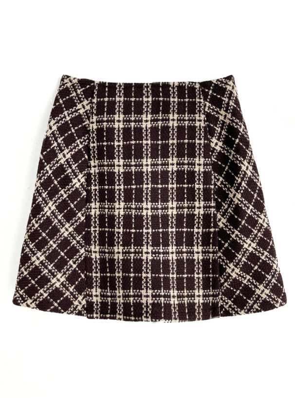 インパン裏地付きチェック柄ツイードミニスカート ta088