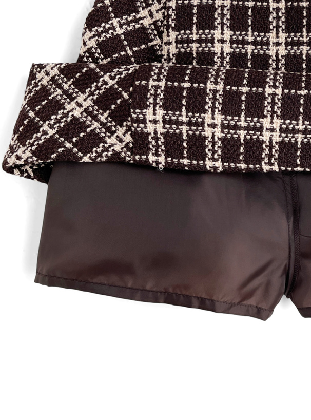 インパン裏地付きチェック柄ツイードミニスカート[ta088]