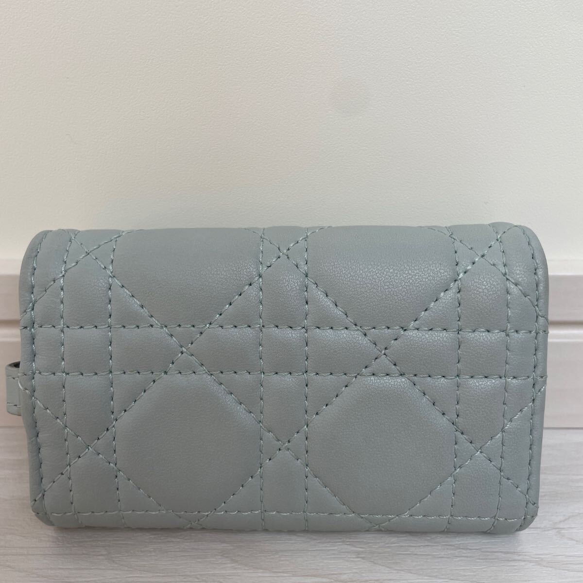 機能的で洗練されたデザインの「Miss Dior (ミス ディオール)」キーケース。セレスティアルブルーの「カナージュ」ラムスキンを使用し、フロントにD.I.O.R.チャームをあしらいました。