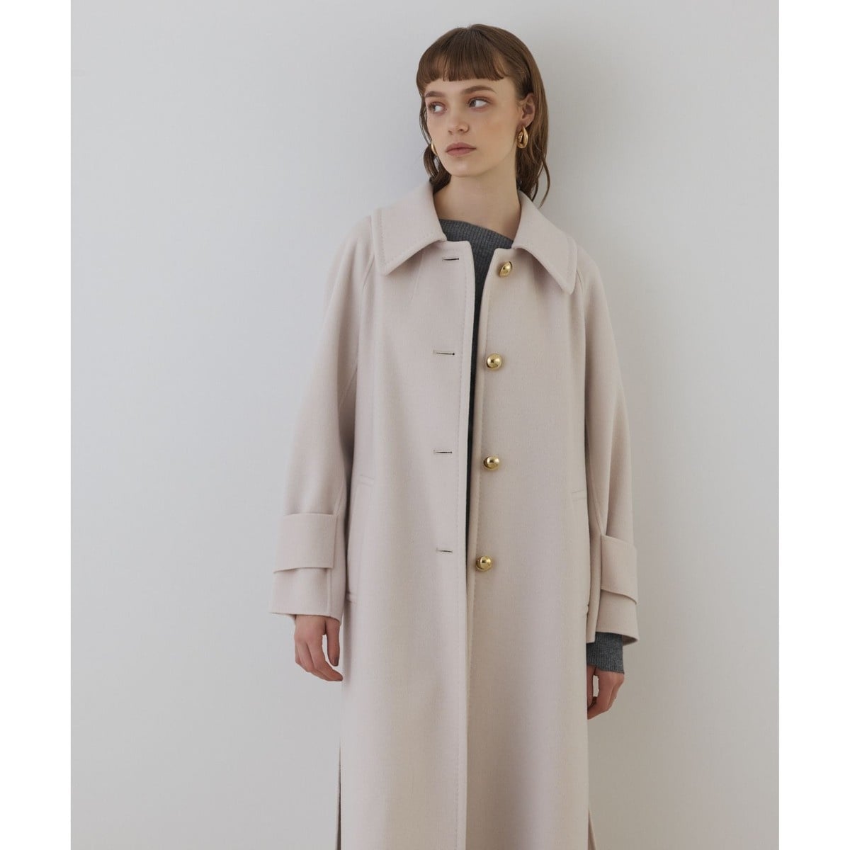 CINOH チノ ウールカシミヤ ノーカラー リバーコート
