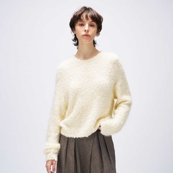 暖かみのあるボリューム感が魅力のフェザーニット。