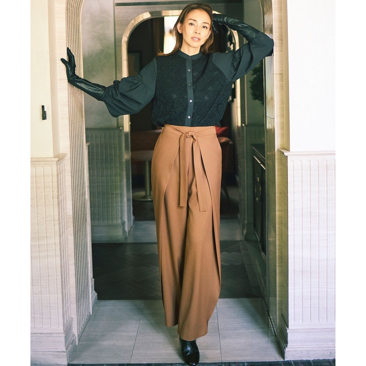レースと無地の切り替えが印象的なブラウス■デザイン前後身頃にコードレース、その他の部分をマットな無地生地で切り替えたデザインブラウスです。裾はレースのスカラを生かした程よいクロップドレングスになっています。肩回りはすっきりと作りながらも袖の途中で切り替えを入れることで、印象的なボリューム感のパフスリーブになり、1枚で着ても華やかな印象のブラウスです。身頃には程よい透け感の別布を裏打ちすることで、レースの透け感も気にならずに着て頂けます。袖口には部分的にゴムを入れ、袖をたくし上げてよりボリュームを出した着こなしもおすすめです。■素材レース部分は、従来よりも太いコードを使用することで、モチーフにより立体感を付けております。無地の別布部分は、綿のようなナチュラルな表情感でありながら、ポリエステル100%のタイプライター素材です。ポリエステルで作ることでしわが気になりにくいのも嬉しいポイントです。