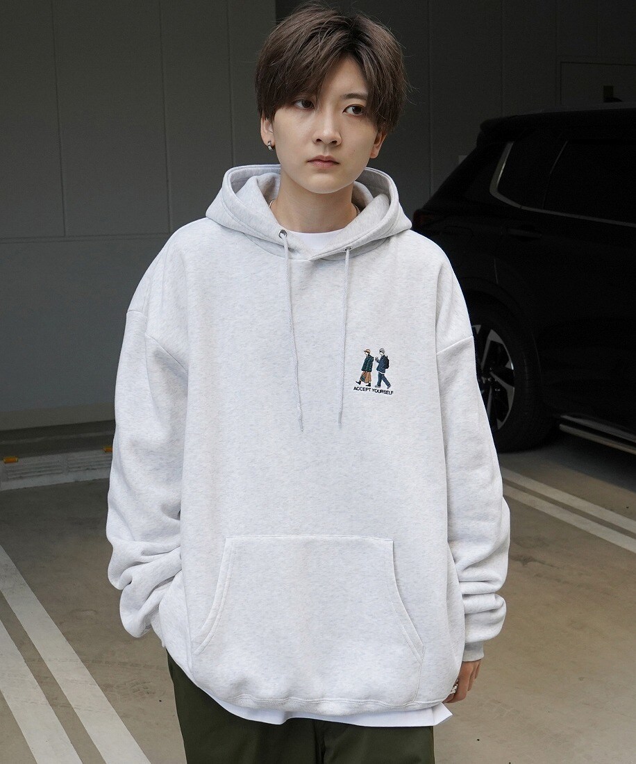 歩いている人のイラストが刺?されたスウェットパーカー。