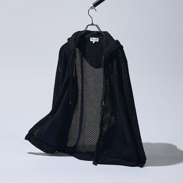 レイヤードが楽しめるメッシュ構造のニットパーカー。