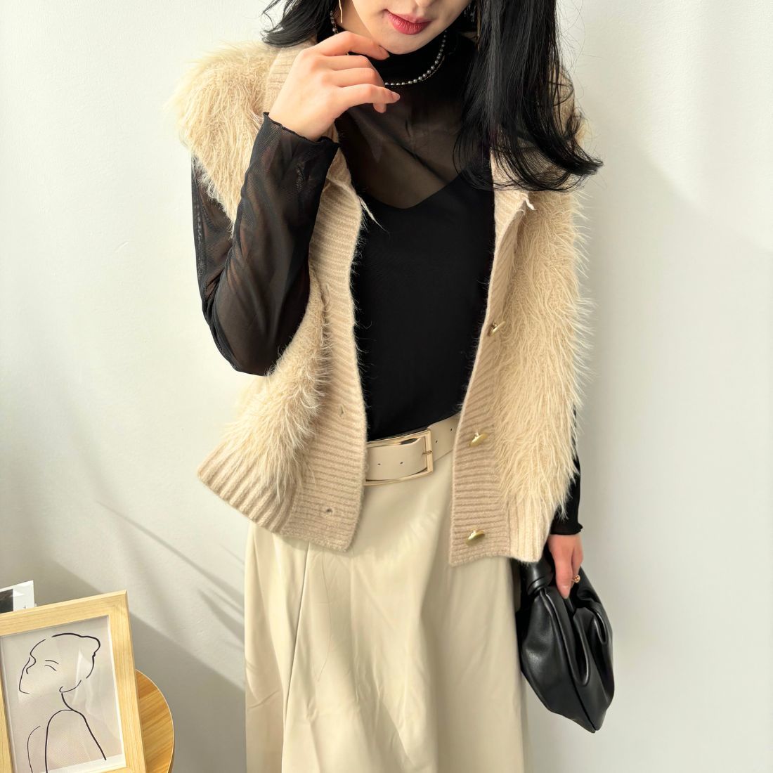 こなれ感溢れる異素材MIXふわふわファーベストが登場♪<br>